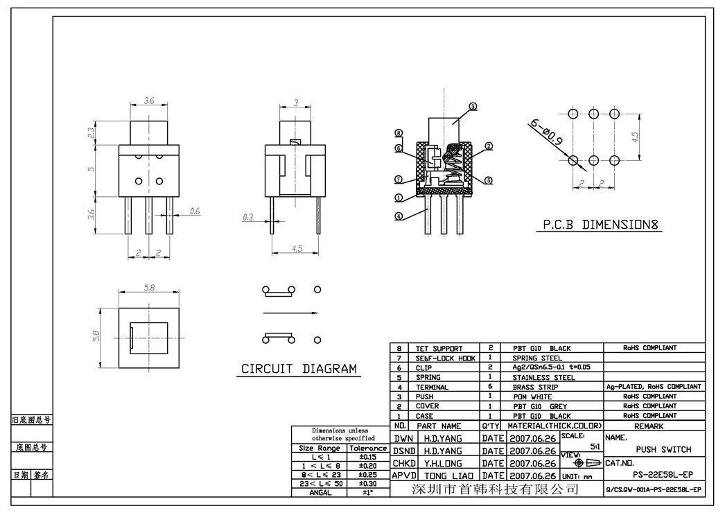 公司電話:0755-27597601 粵ICP備14034960號-1 貼片輕觸開關生產廠家,進口公司,批發(fā)價格,定制哪家好 公司傳真:400 082 059224小時工程咨詢熱線:0755-27215591