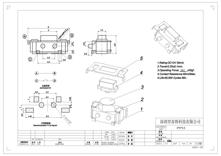 公司電話:0755-27597601 粵ICP備14034960號-1 貼片輕觸開關(guān)生產(chǎn)廠家,進口公司,批發(fā)價格,定制哪家好 公司傳真:400 082 059224小時工程咨詢熱線:0755-27215591